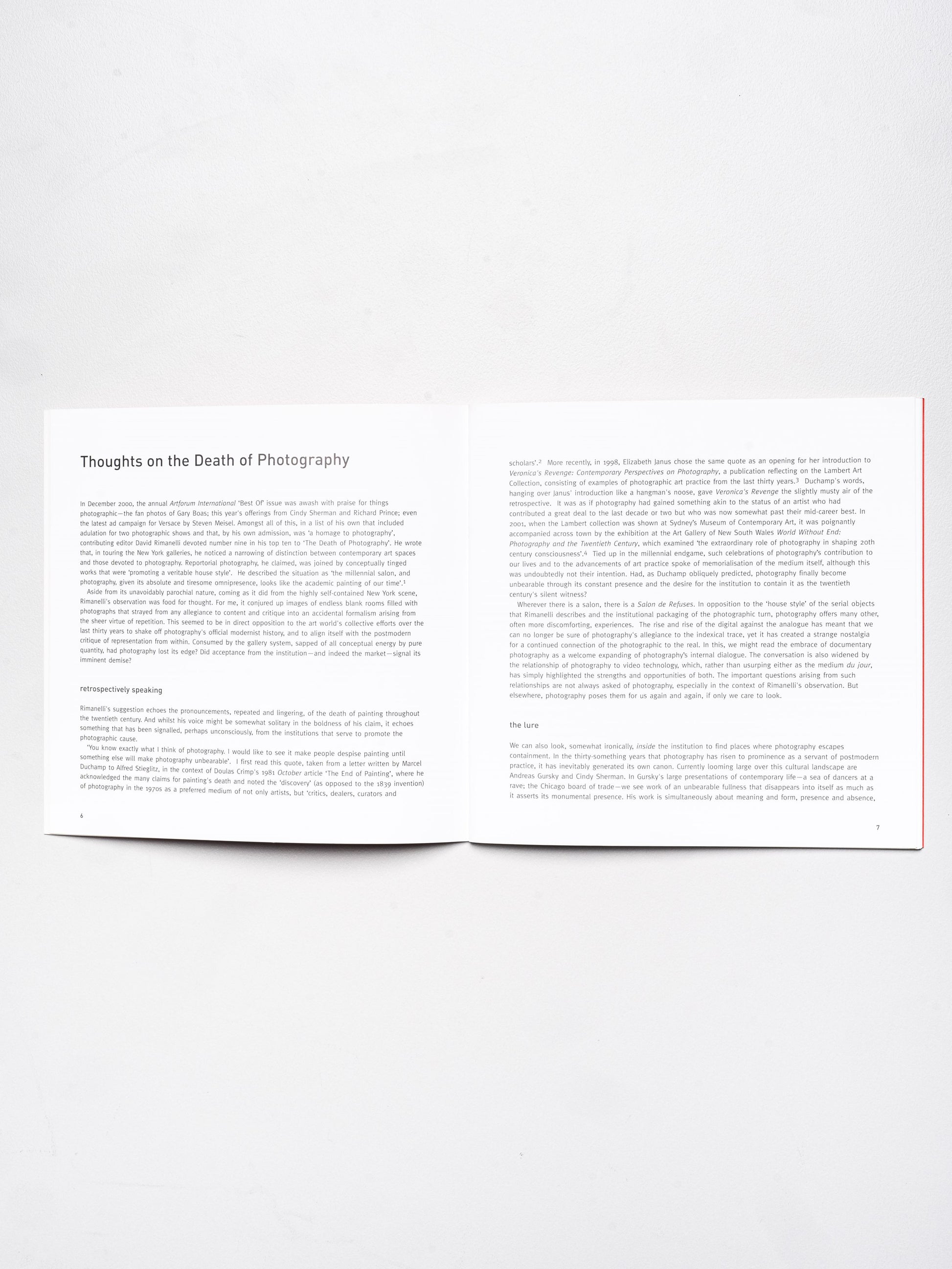 Published 2001 by Te Pātaka Toi Adam Art Gallery at Te Herenga Waka—Victoria University of Wellington and Centre for Contemporary Photography, Melbourne, Australia.