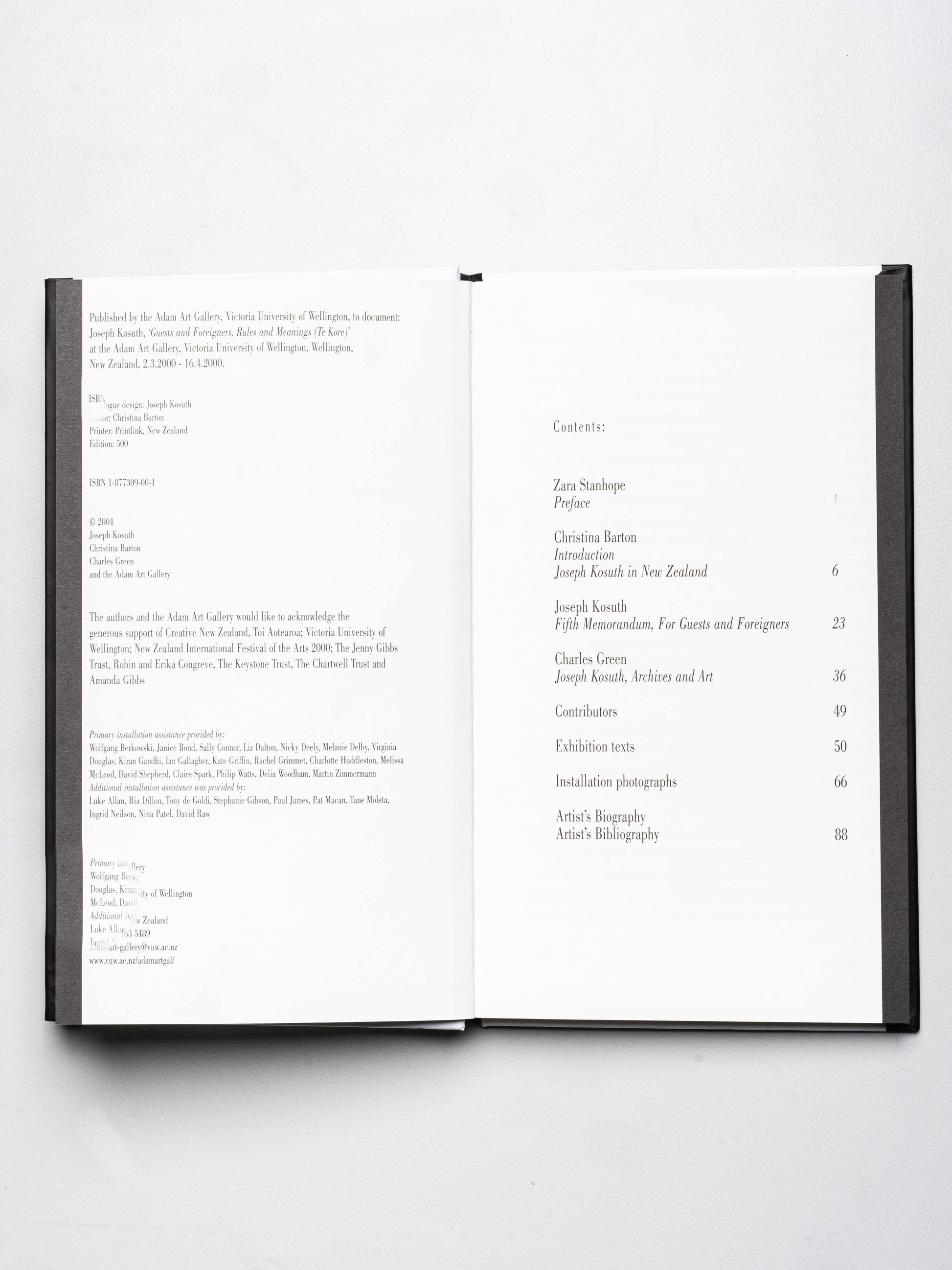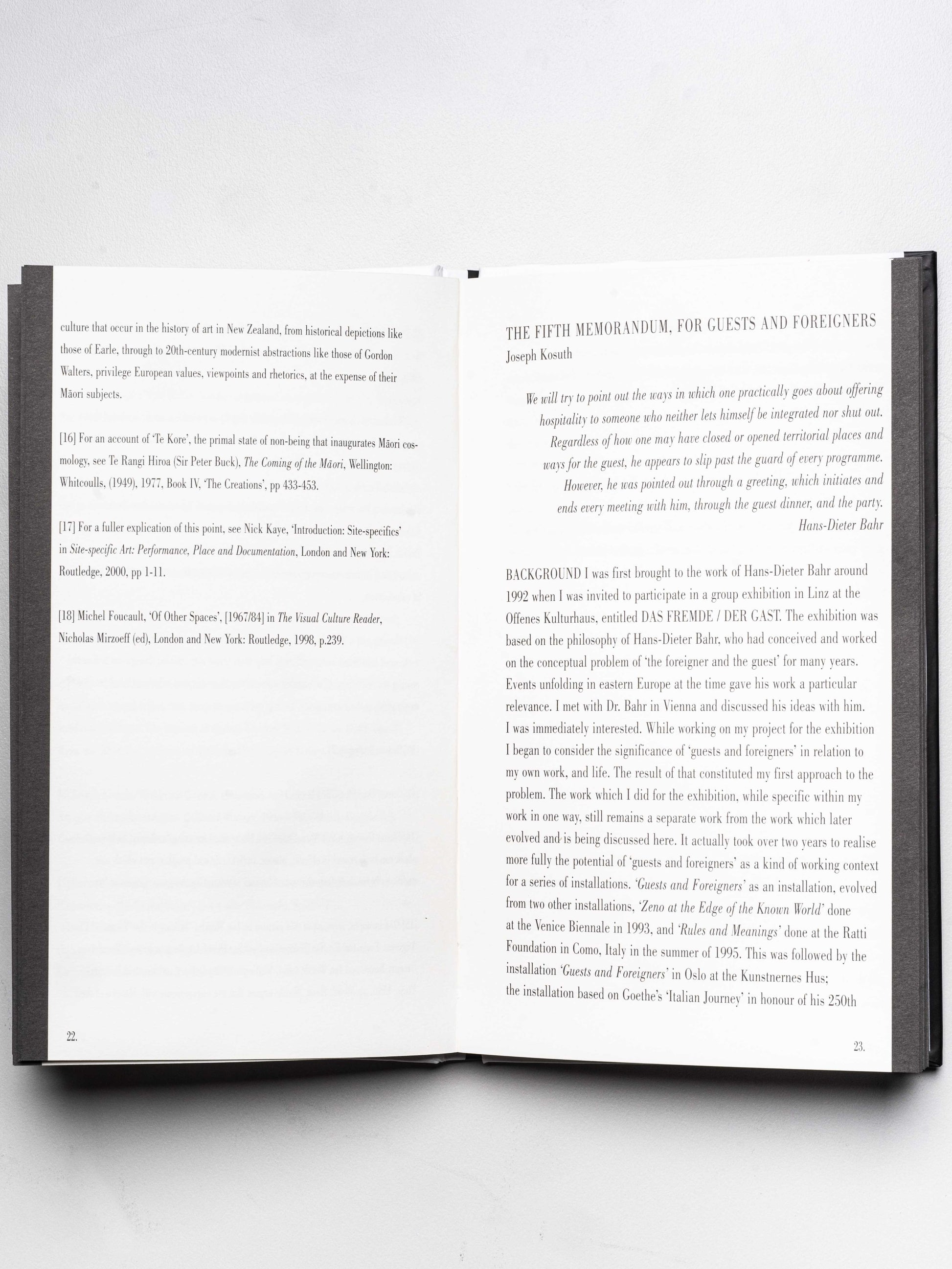 This catalogue was published in association with the exhibition Guests and Foreigners, Rules and Meaning (Te Kore), March-April 2000.