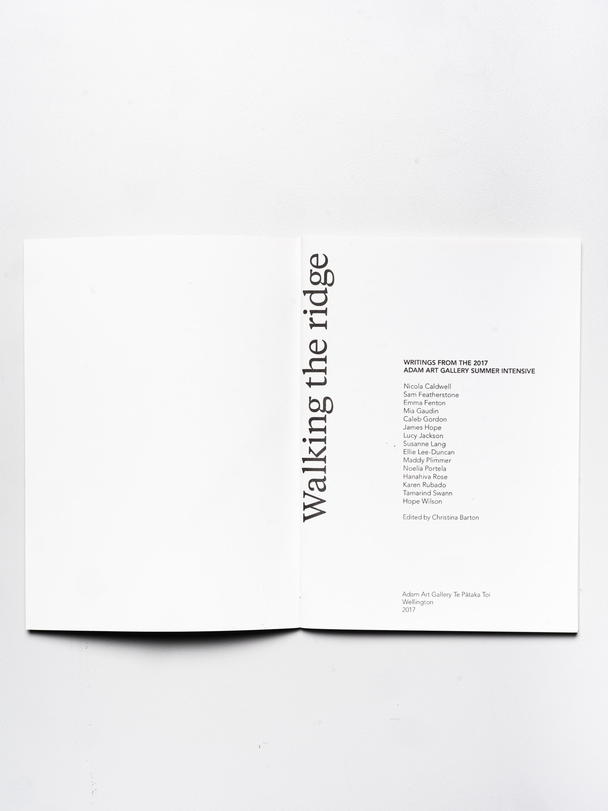 Walking the Ridge: Writings from the 2017 Adam Art Gallery Summer Intensive